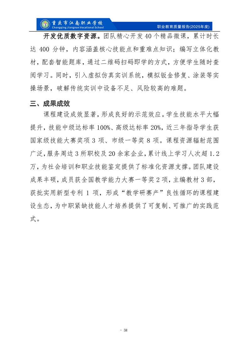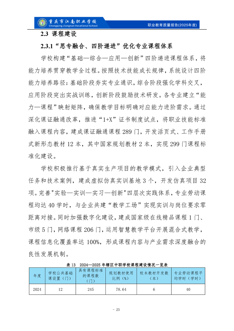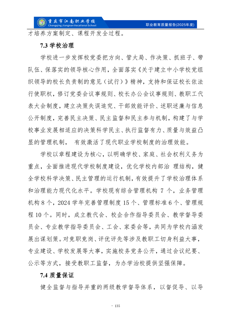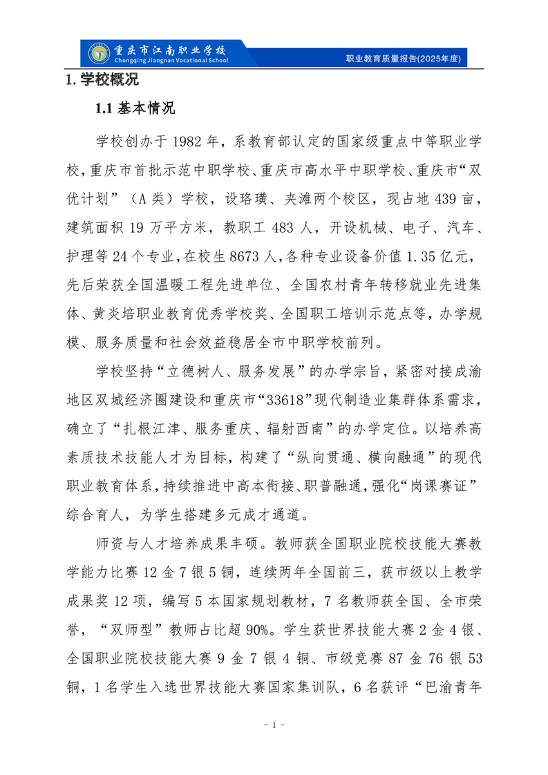 重庆市江南职业学校2025年度质量报告