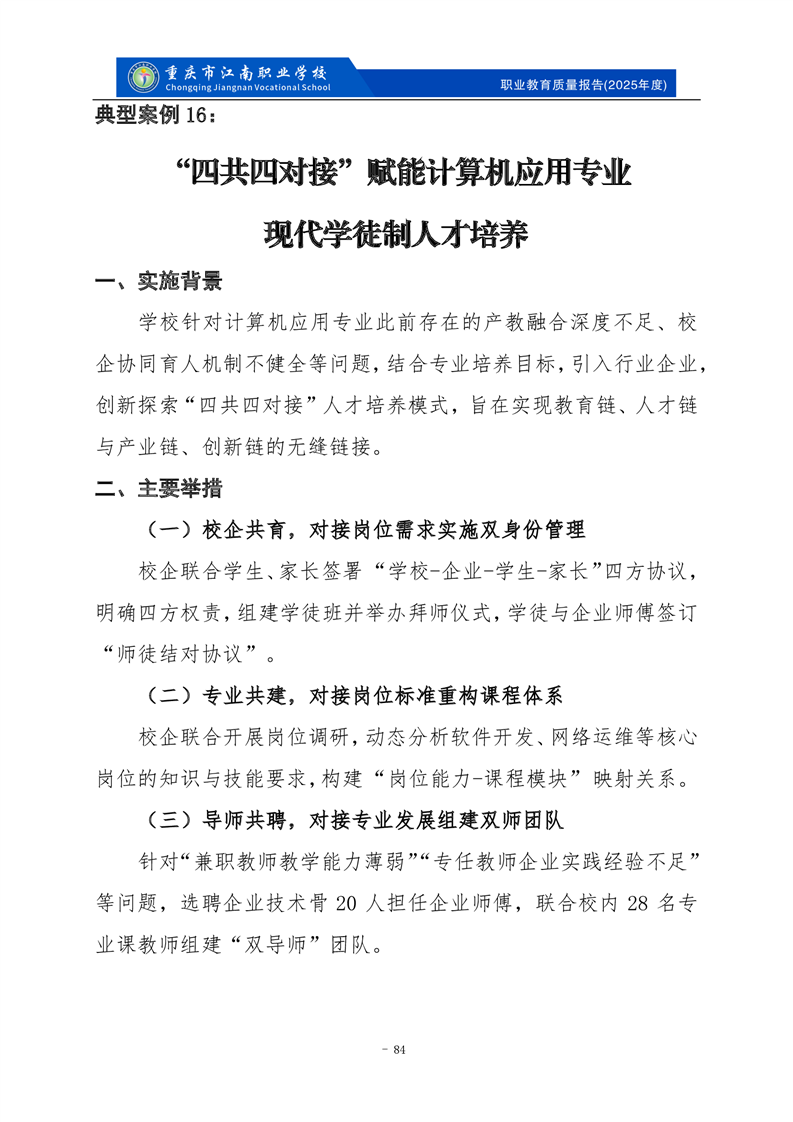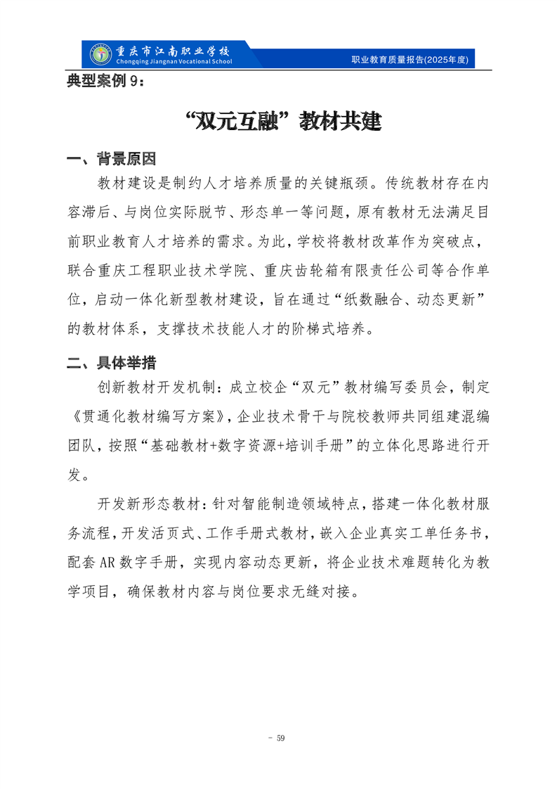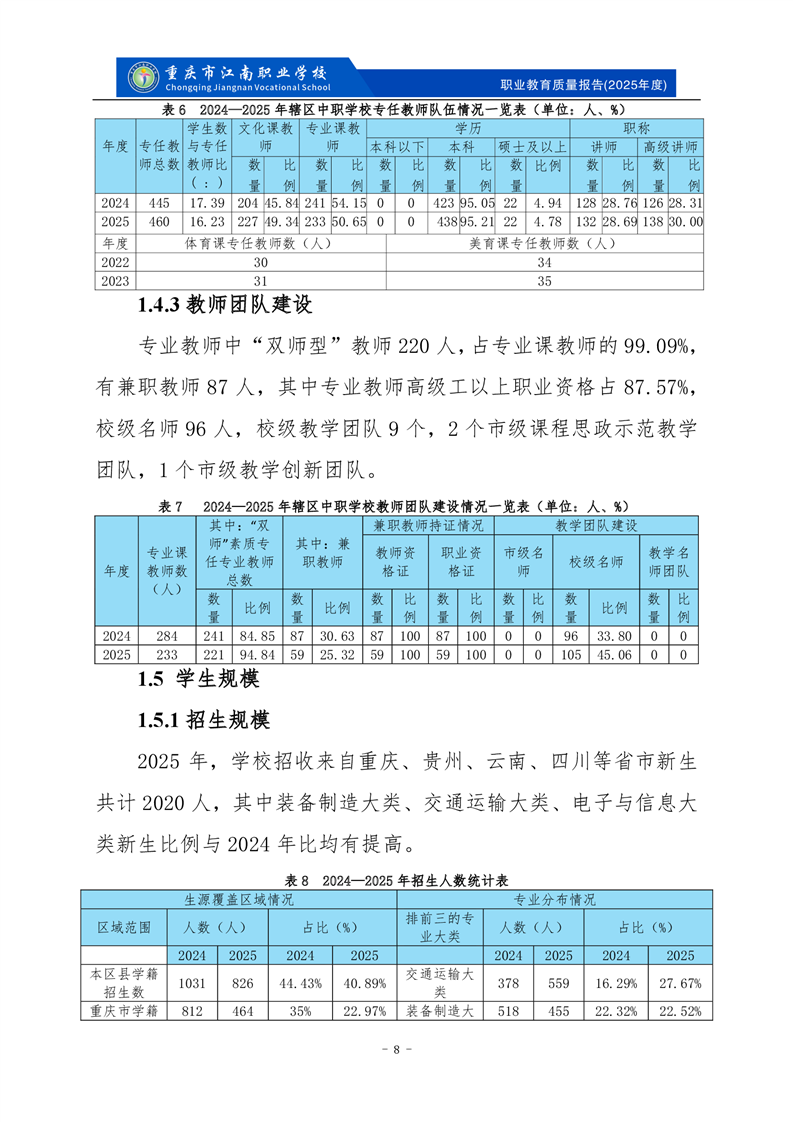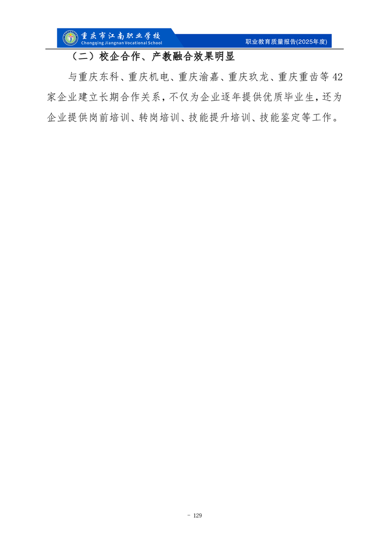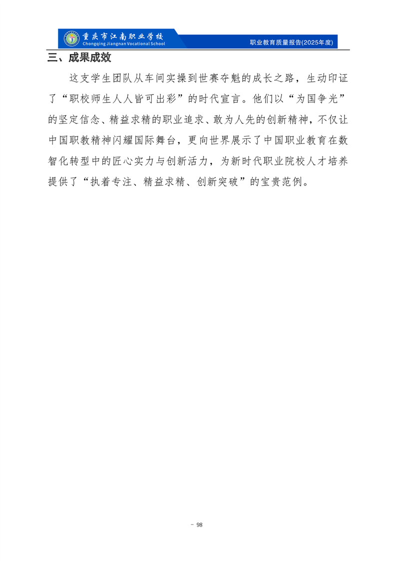 重庆市江南职业学校2025年度质量报告
